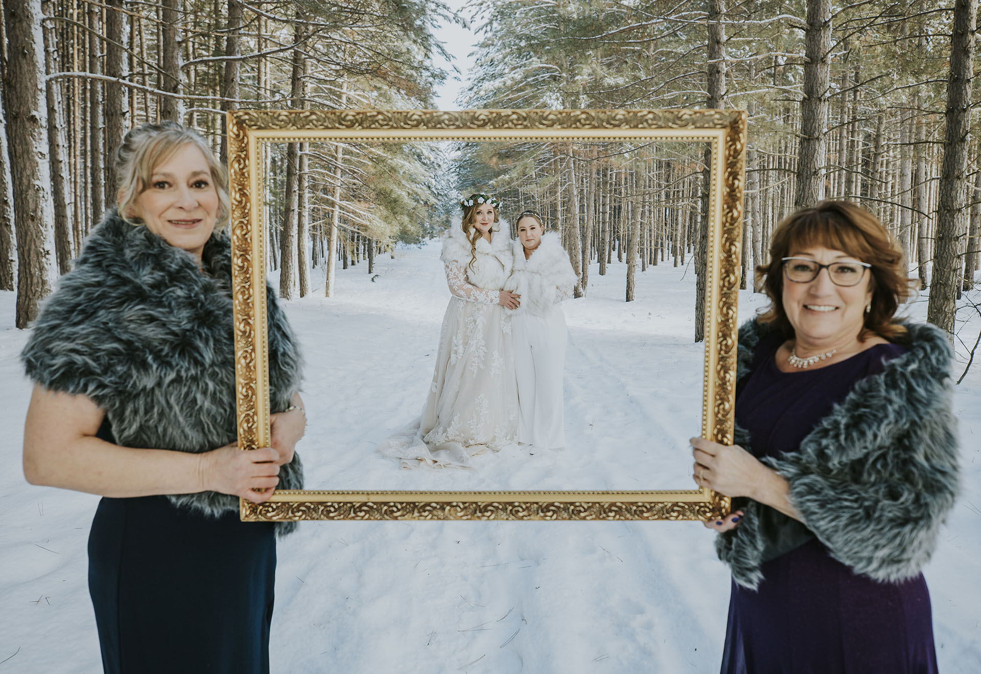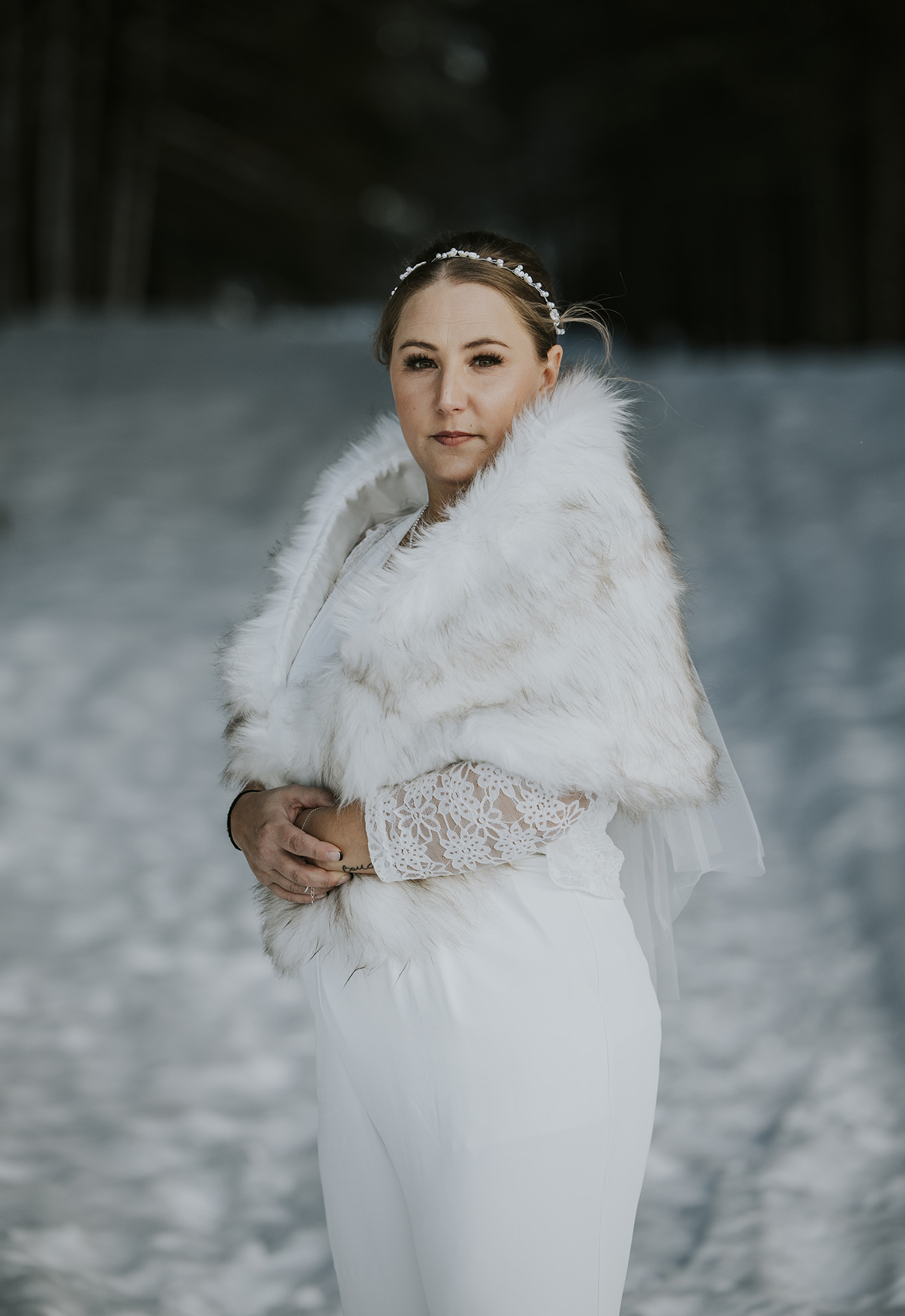 Despite the cold January weather, Shan and Meli embraced the winter season completely. We photographed their portraits and family photos in the forest, creating images that feel calm, timeless, and deeply personal. The snow-covered landscape made the perfect setting for their story and reflected the quiet connection they share.