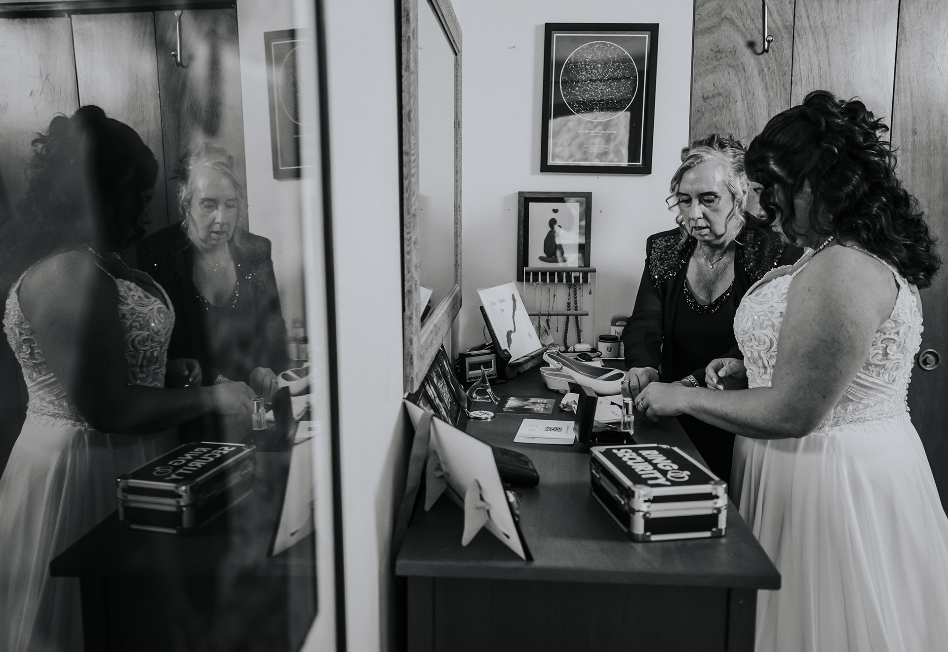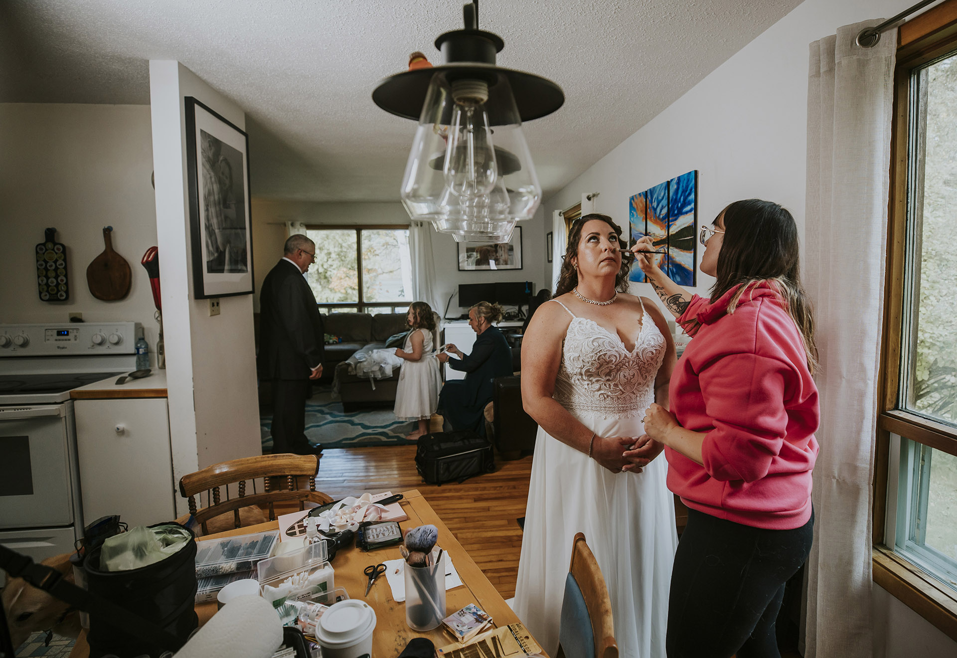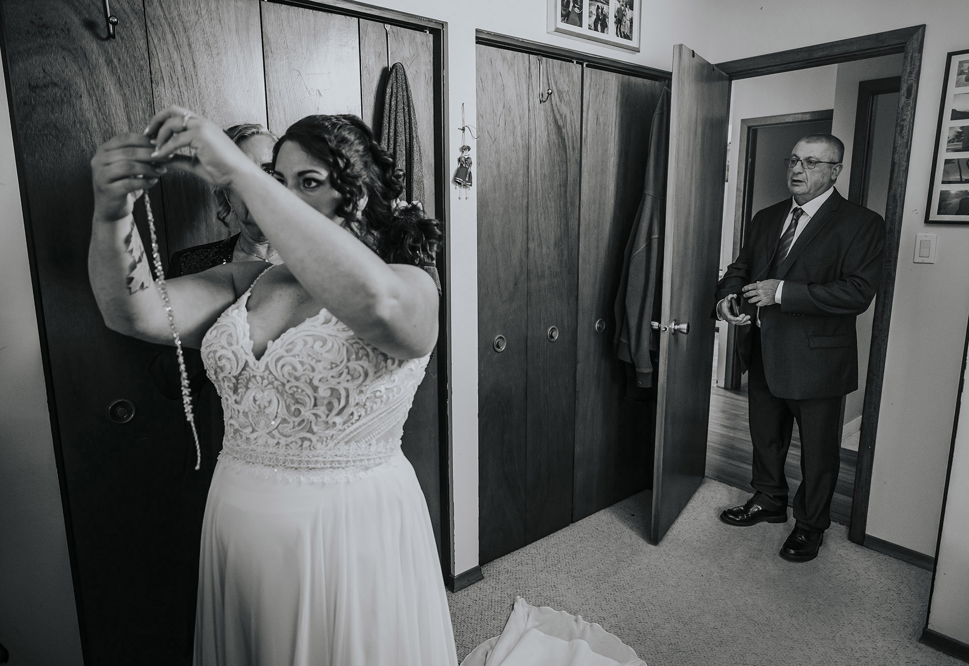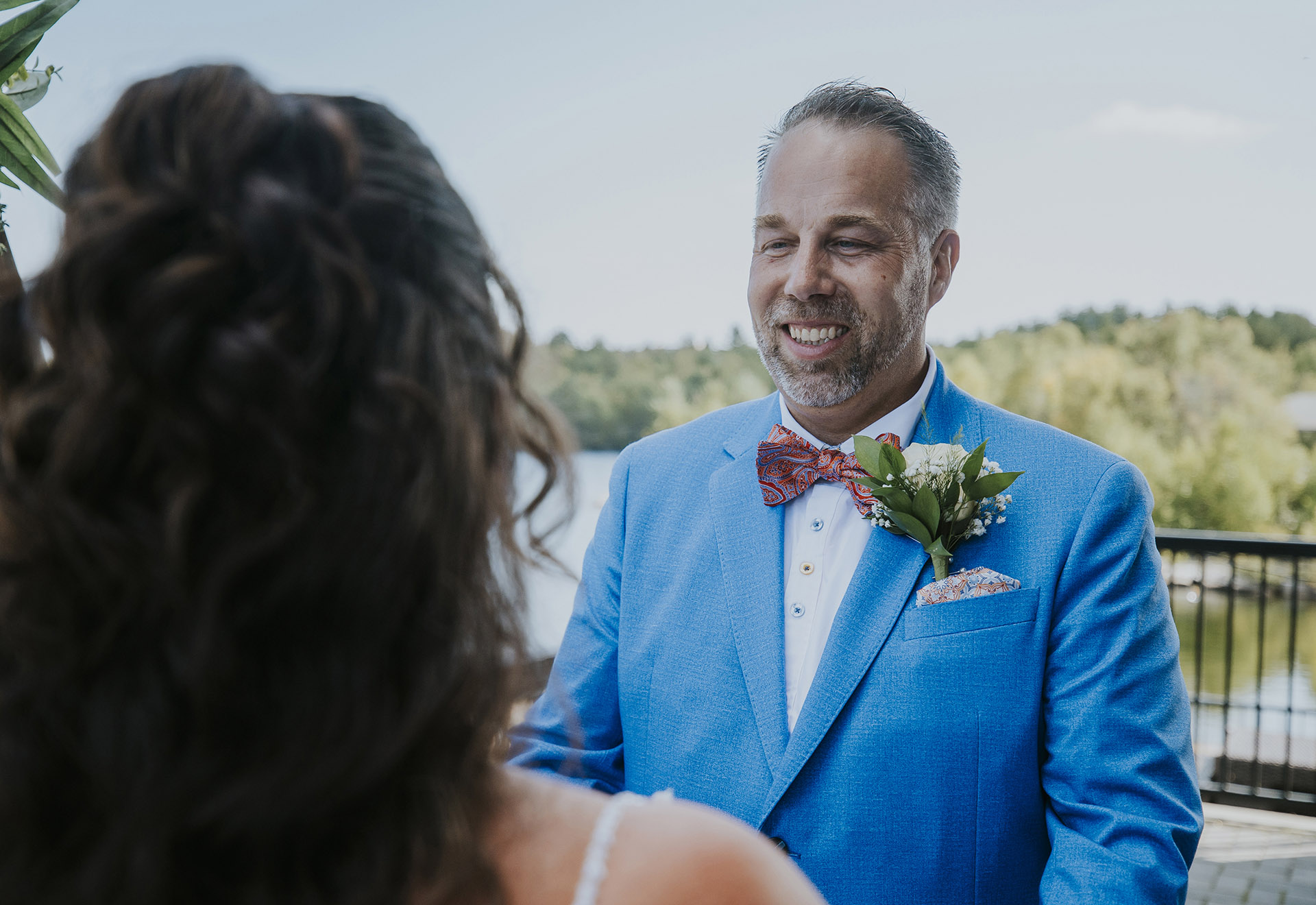Sarah and James’ wedding day was a perfect reflection of what a meaningful and personal wedding in Sudbury, Ontario can feel like. Their day began at home, where they got ready together in a calm and familiar space, surrounded by the comfort of their own environment. Instead of a traditional first look, they chose to see each other naturally, creating a relaxed and genuine start to their wedding day.