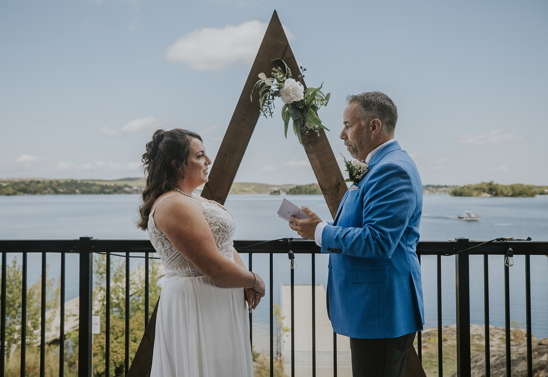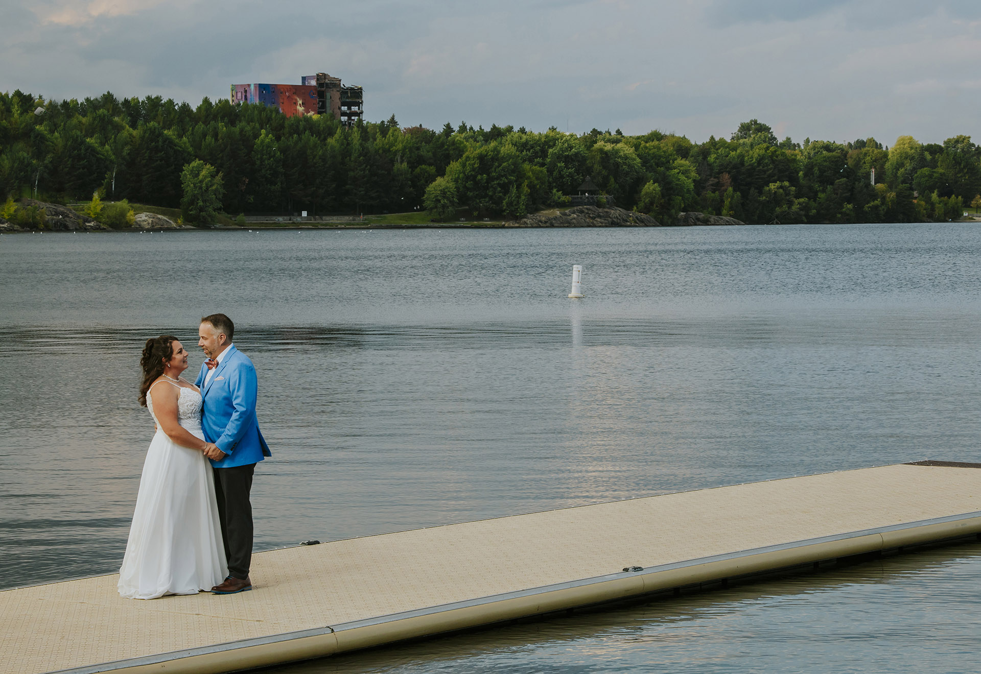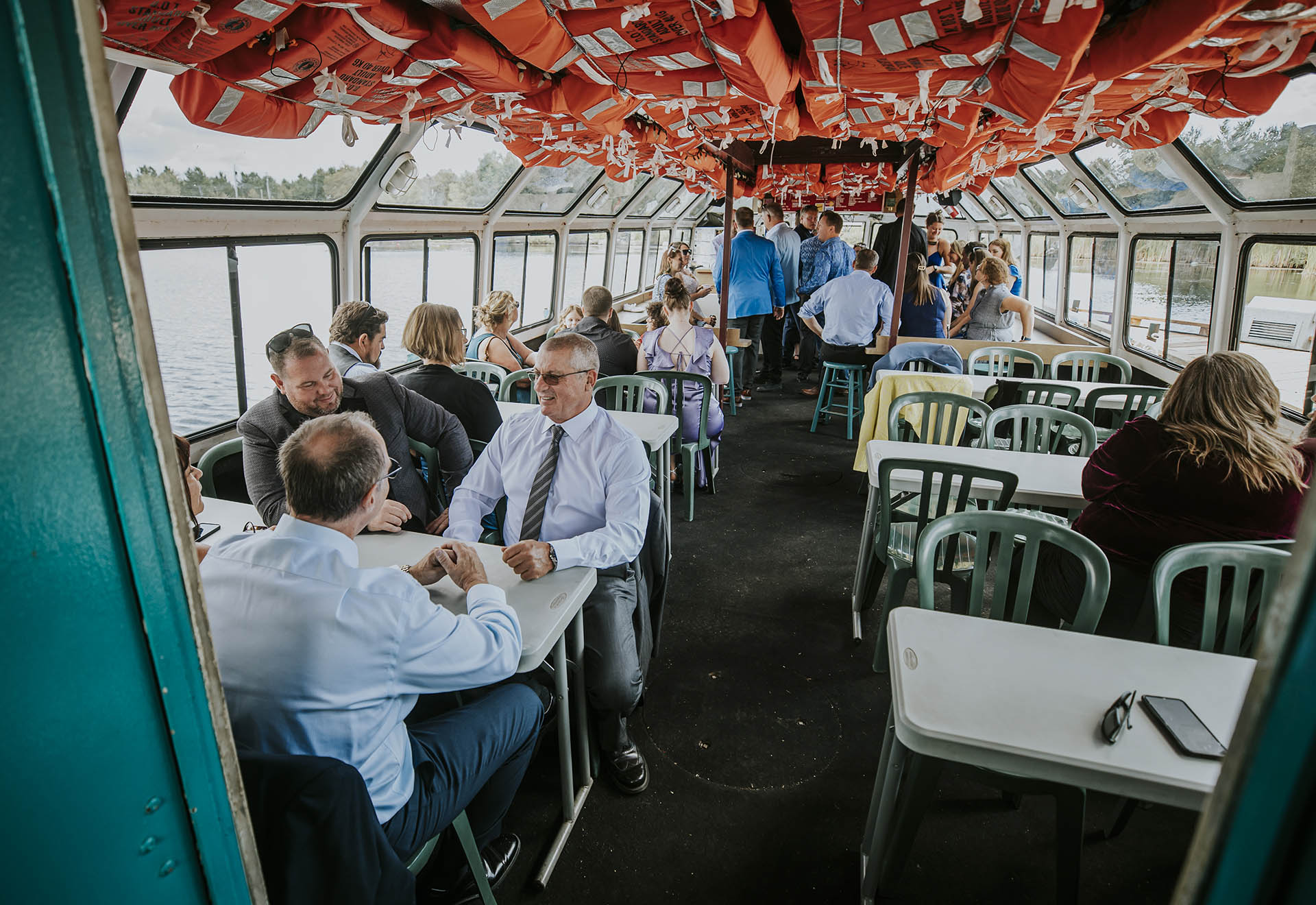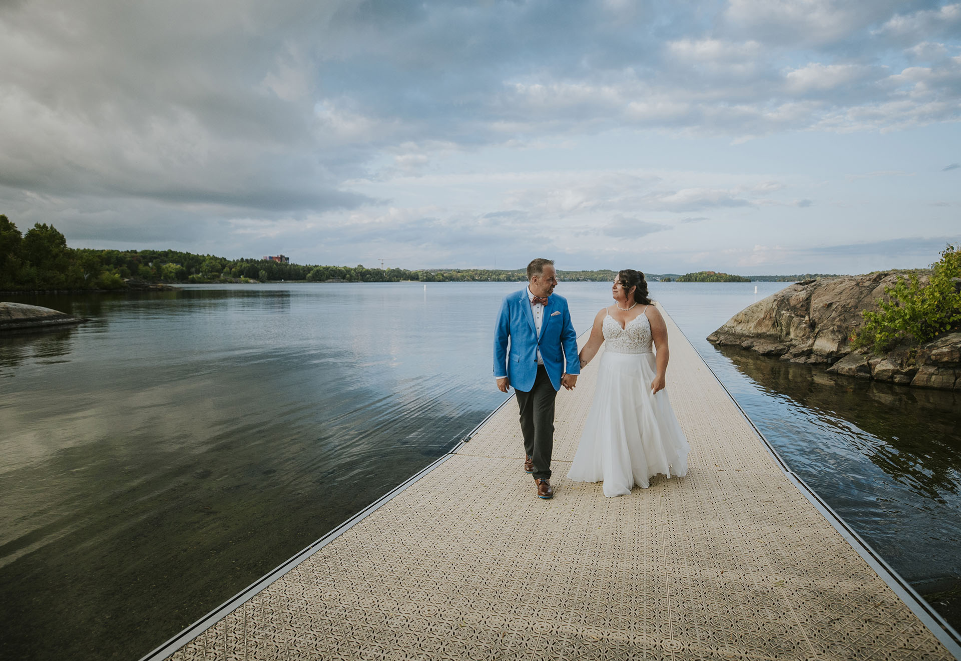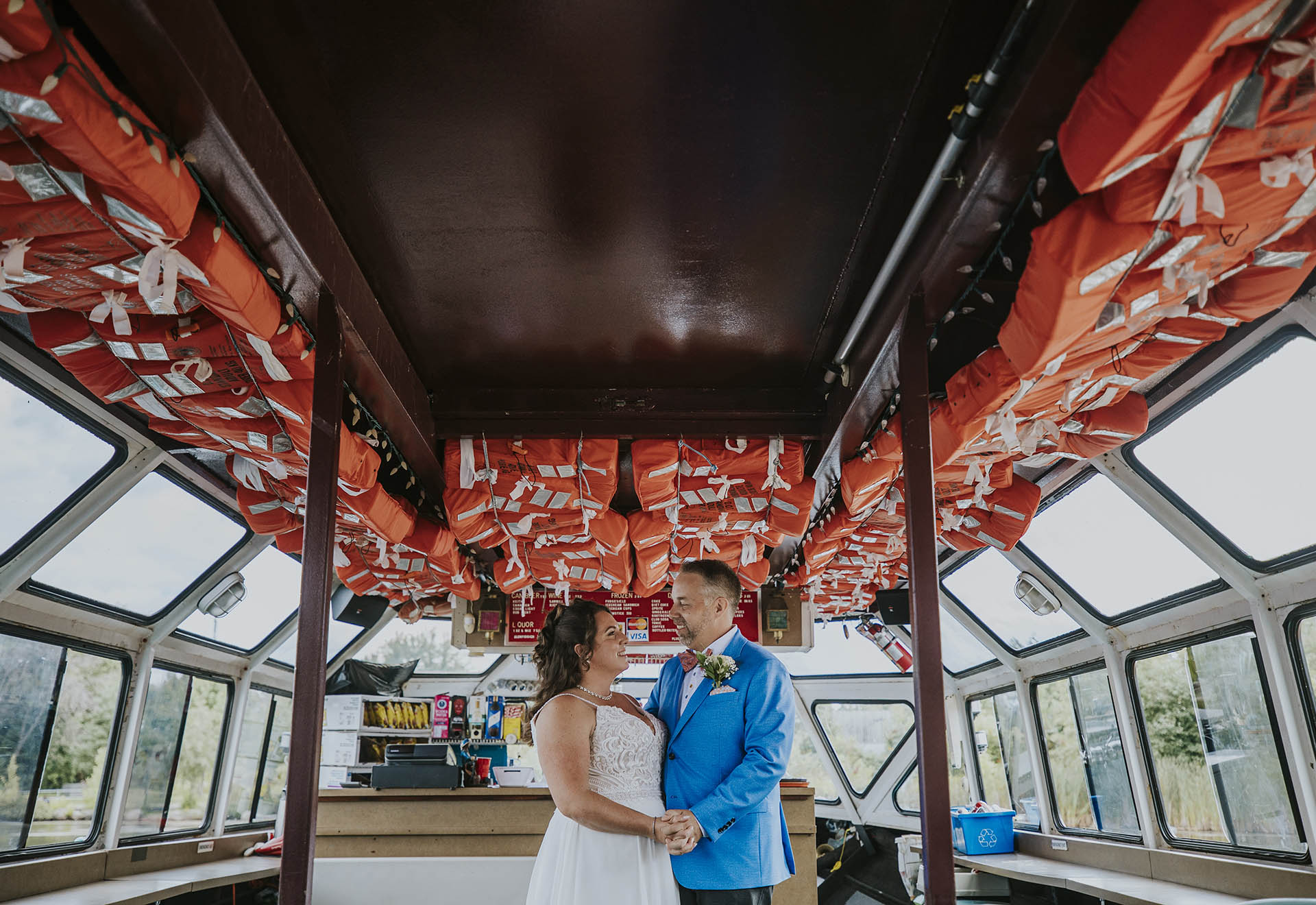 One of the most unique parts of their wedding day was the experience at Ramsey Lake. After the ceremony, we headed to the dock at Science North, where everyone boarded the seasonal William Ramsey Cruise Boat for a ride across the lake. This added a memorable and distinctly Sudbury element to their wedding, creating moments that felt both fun and meaningful.