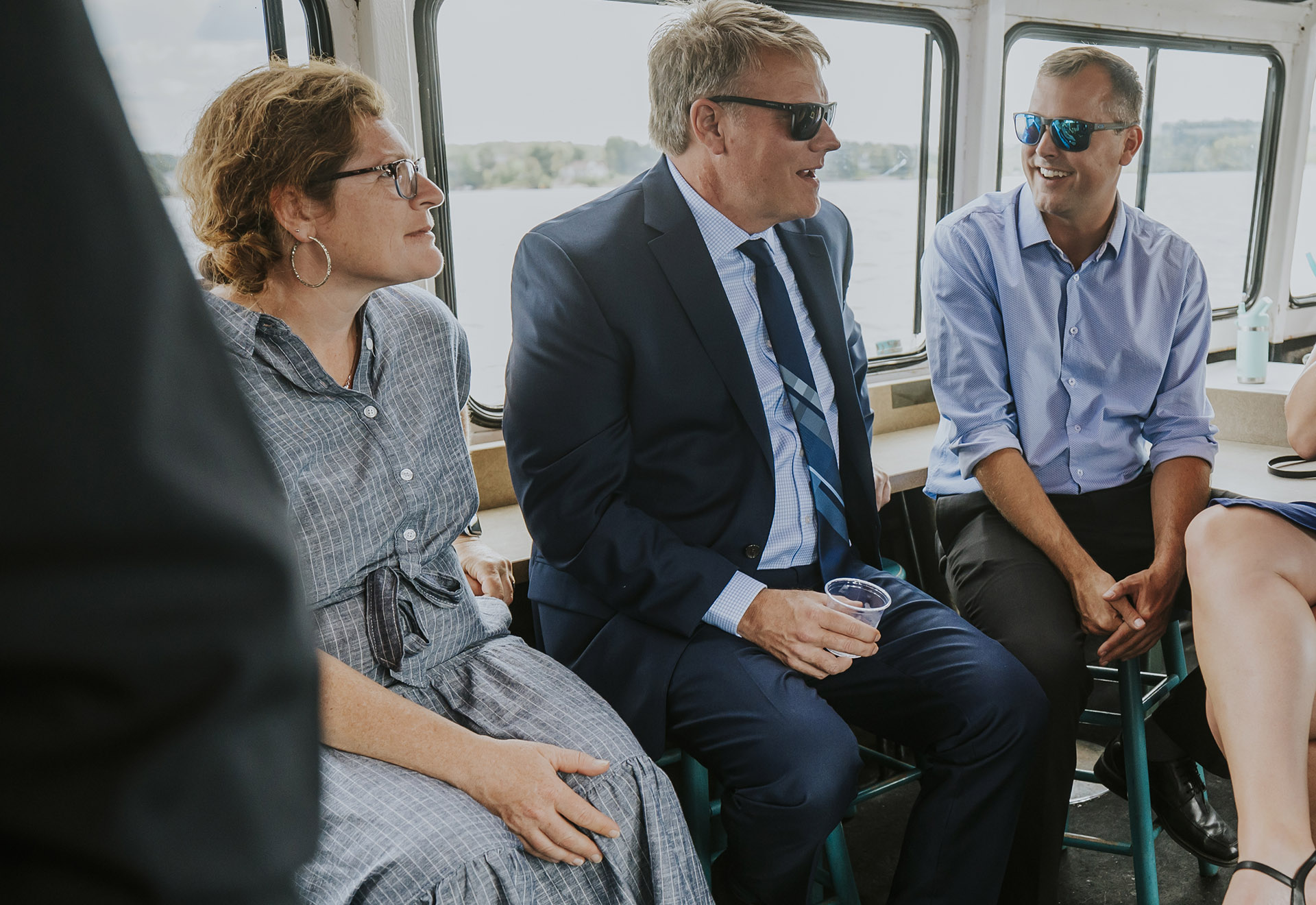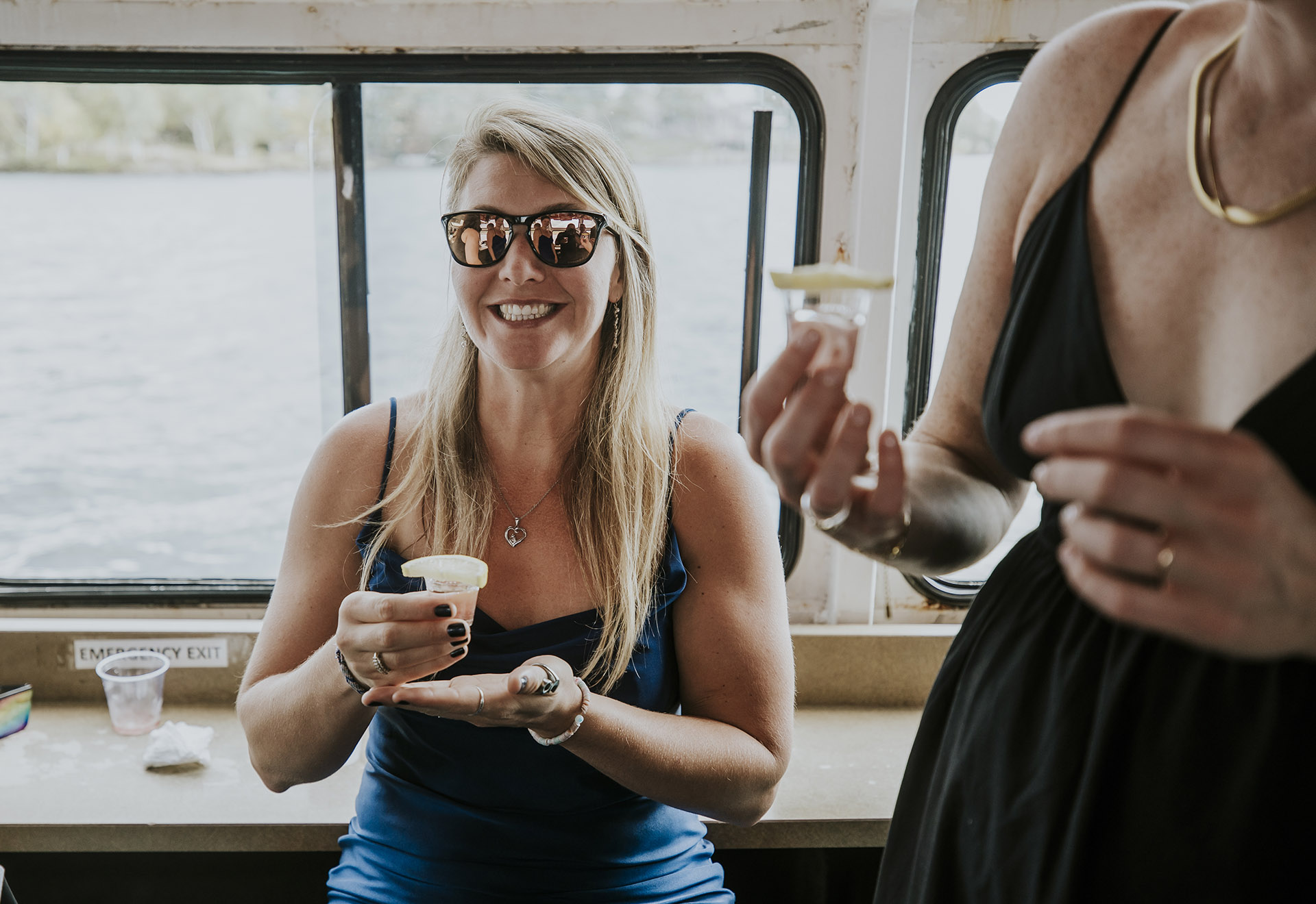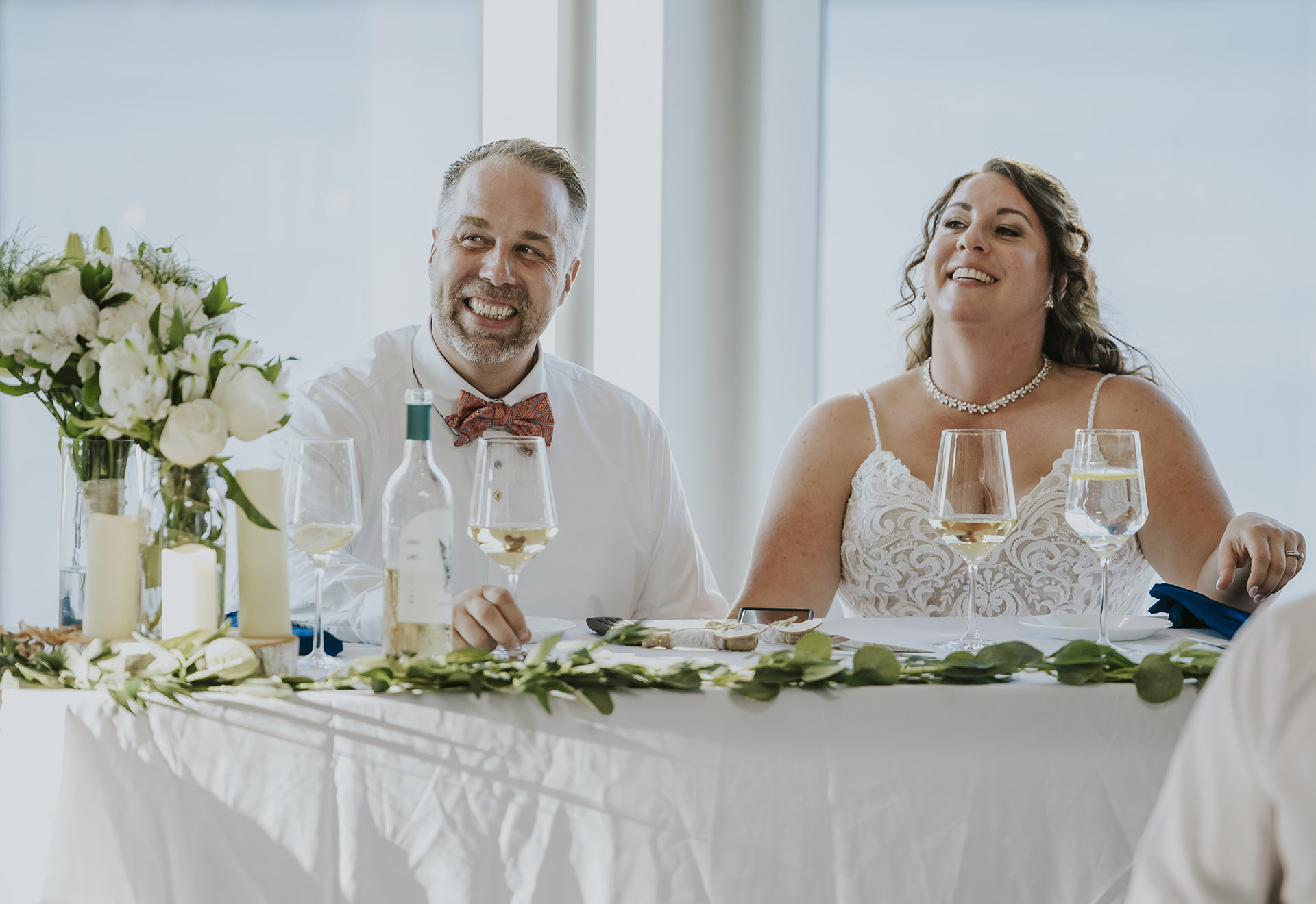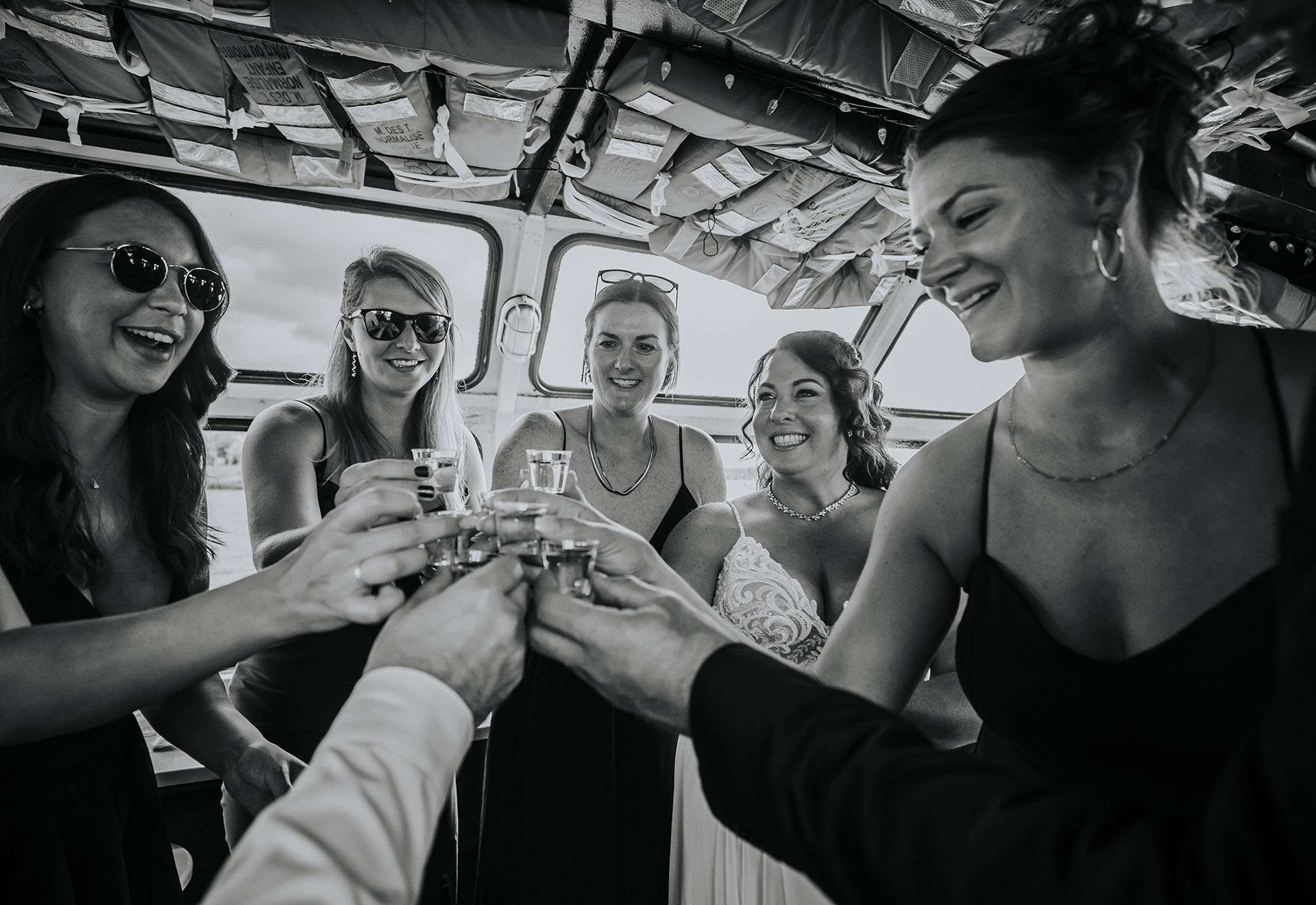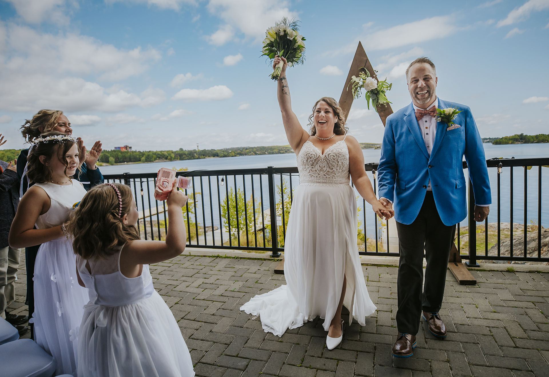 One of the most unique parts of their wedding day was the experience at Ramsey Lake. After the ceremony, we headed to the dock at Science North, where everyone boarded the seasonal William Ramsey Cruise Boat for a ride across the lake. This added a memorable and distinctly Sudbury element to their wedding, creating moments that felt both fun and meaningful.