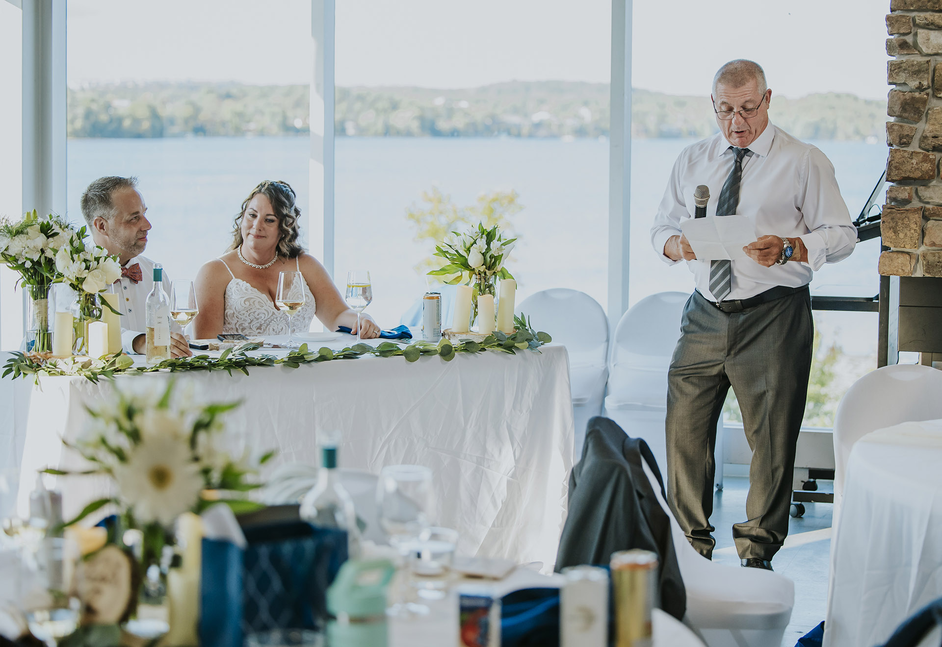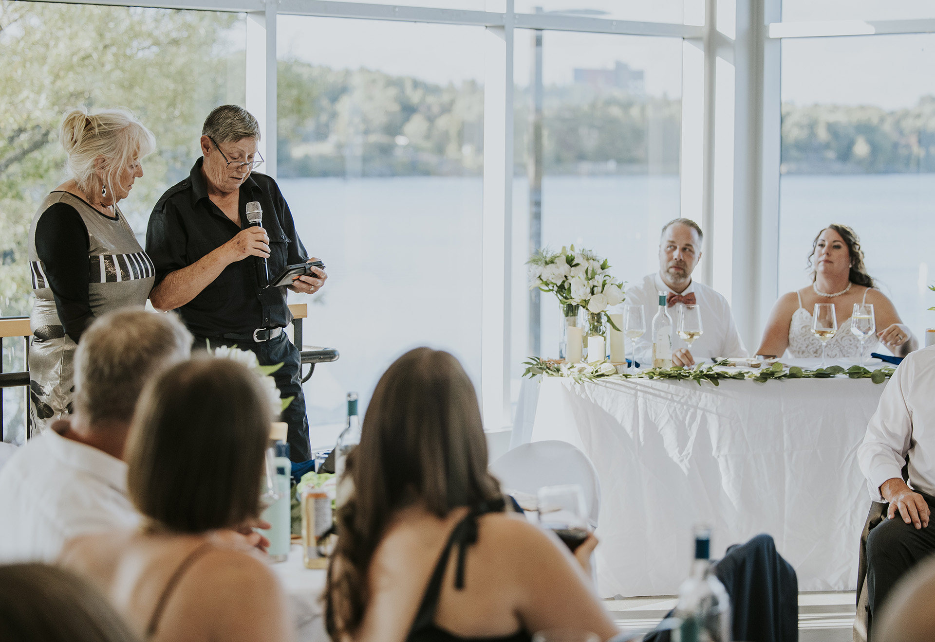 The celebration then moved to the Northern Water Sports Centre, where both the ceremony and reception took place. Surrounded by family and friends, Sarah and James exchanged vows in a setting that perfectly blends nature and the Sudbury landscape.